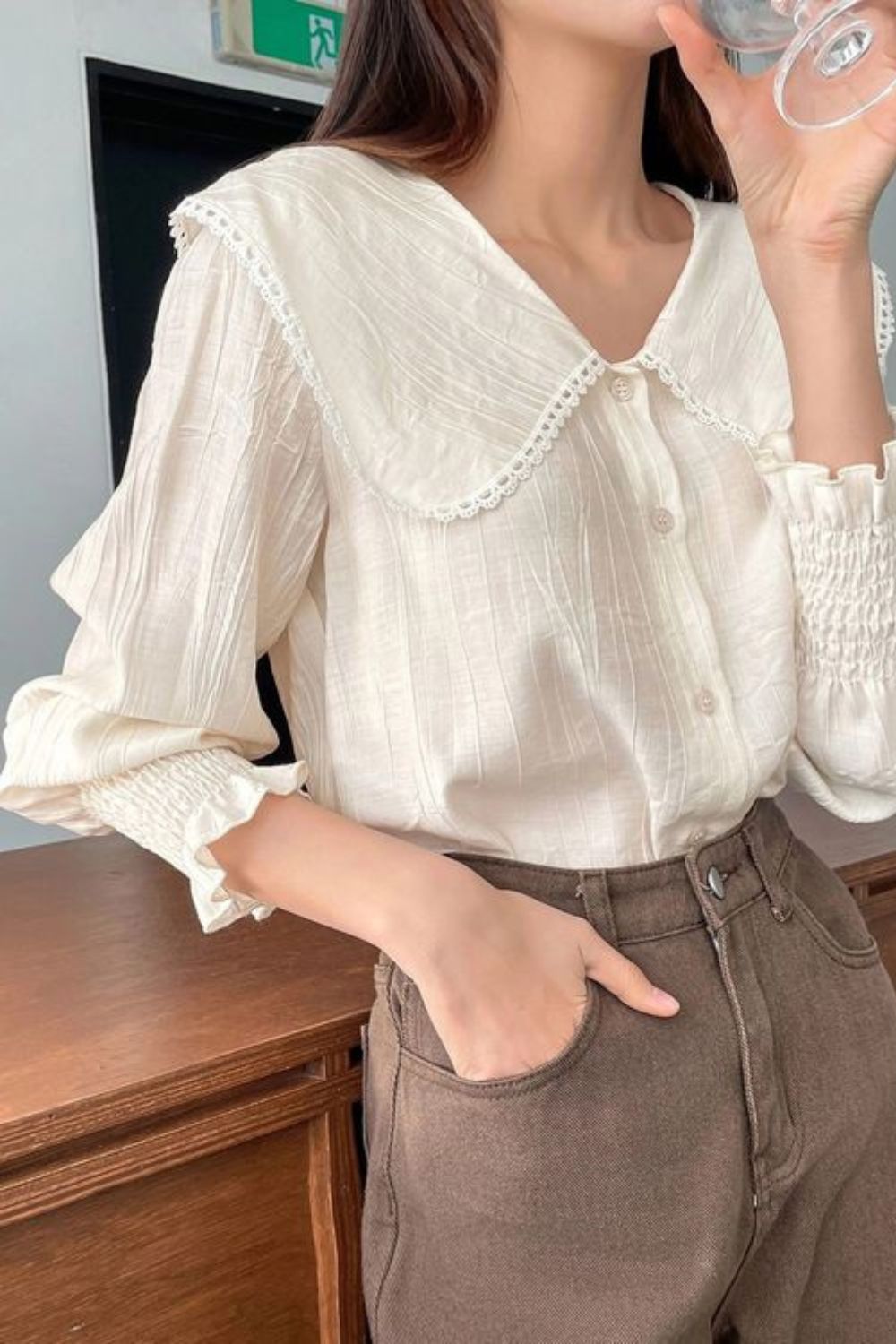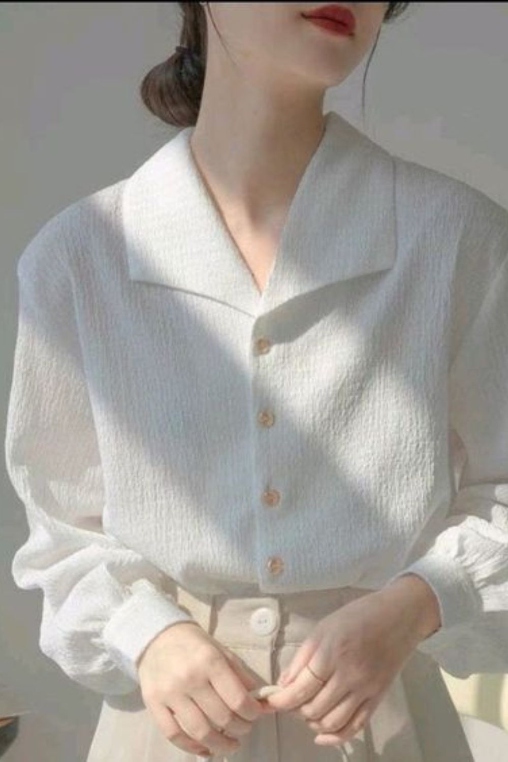 Áo sơ mi trắng thường được thiết kế chủ đạo với màu trắng hoặc áo sơ mi màu pastel để phần tay phồng được nổi bật nhất .Là một trong những item đi đầu trong kiểu dáng .